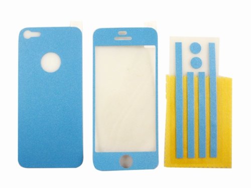 Verre + Retour + Side Matte Glitter autocollant protecteur d'écran pour iPhone 5 Verre + Retour + Side Couleur Screen Protector Peau pour iPhone 5 4 4S Bleu